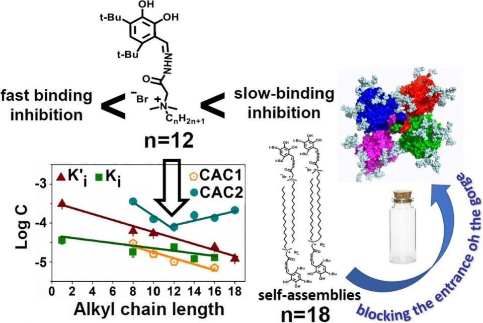 В настоящее время перспективной стратегией представляется использование MTDL ингибиторов холинэстеразы и бутирилхолинэстеразы. Для этих целей были разработаны соединения, содержащие три ключевых фрагмента: 1) липофильный (пространственно-экранированный пирокатехин), 2) катионный (ацилгидразон, обеспечивающий частичную водорастворимость) и 3) алкильный “хвост”, позволяющий более точно донастраивать свойства, в том числе липофильность. Такие соединения показали себя обратимыми ингибиторами бутирилхолинэстеразы. А ацилгидразон с самым длинным в этой серии октадецильным “хвостом” и полученные на его основе липосомальные системы перспективны для будущих медицинских применений.